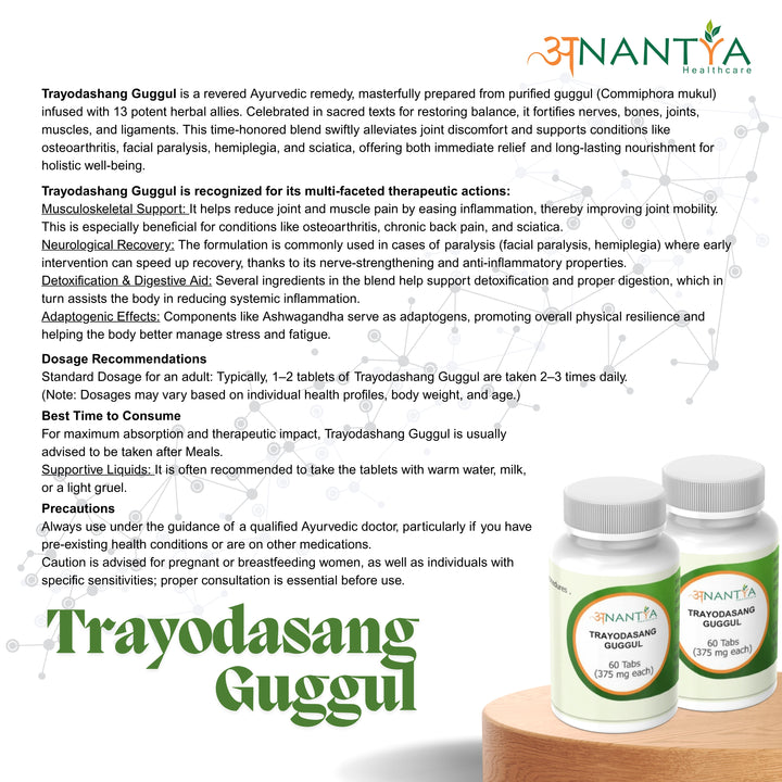 Trayodashang Guggul  This time-honored blend swiftly alleviates joint discomfort and provides long-lasting nourishment for holistic well-being.