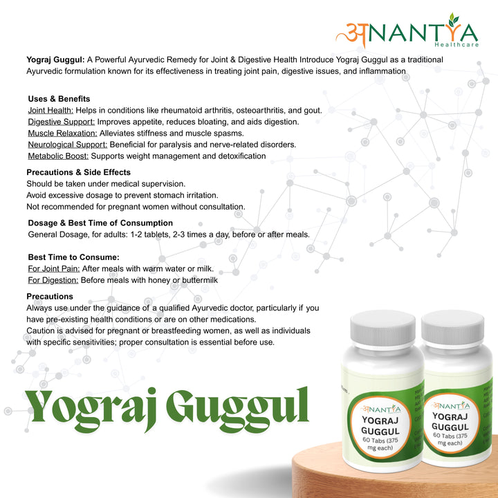 Yograj Guggul: A traditional Ayurvedic formulation known for its effectiveness in treating joint pain, digestive issues, and inflammation.